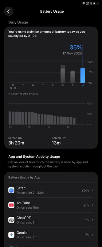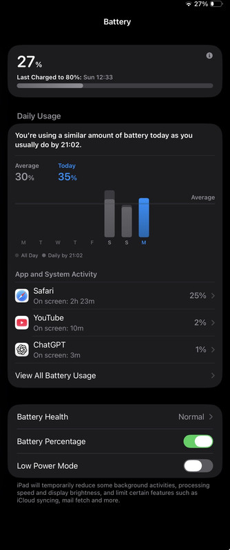 V soboto sem kupil novega ipada a16 in se mi zdi, da ima nenormalno porabo baterije, prilagam screenshot.