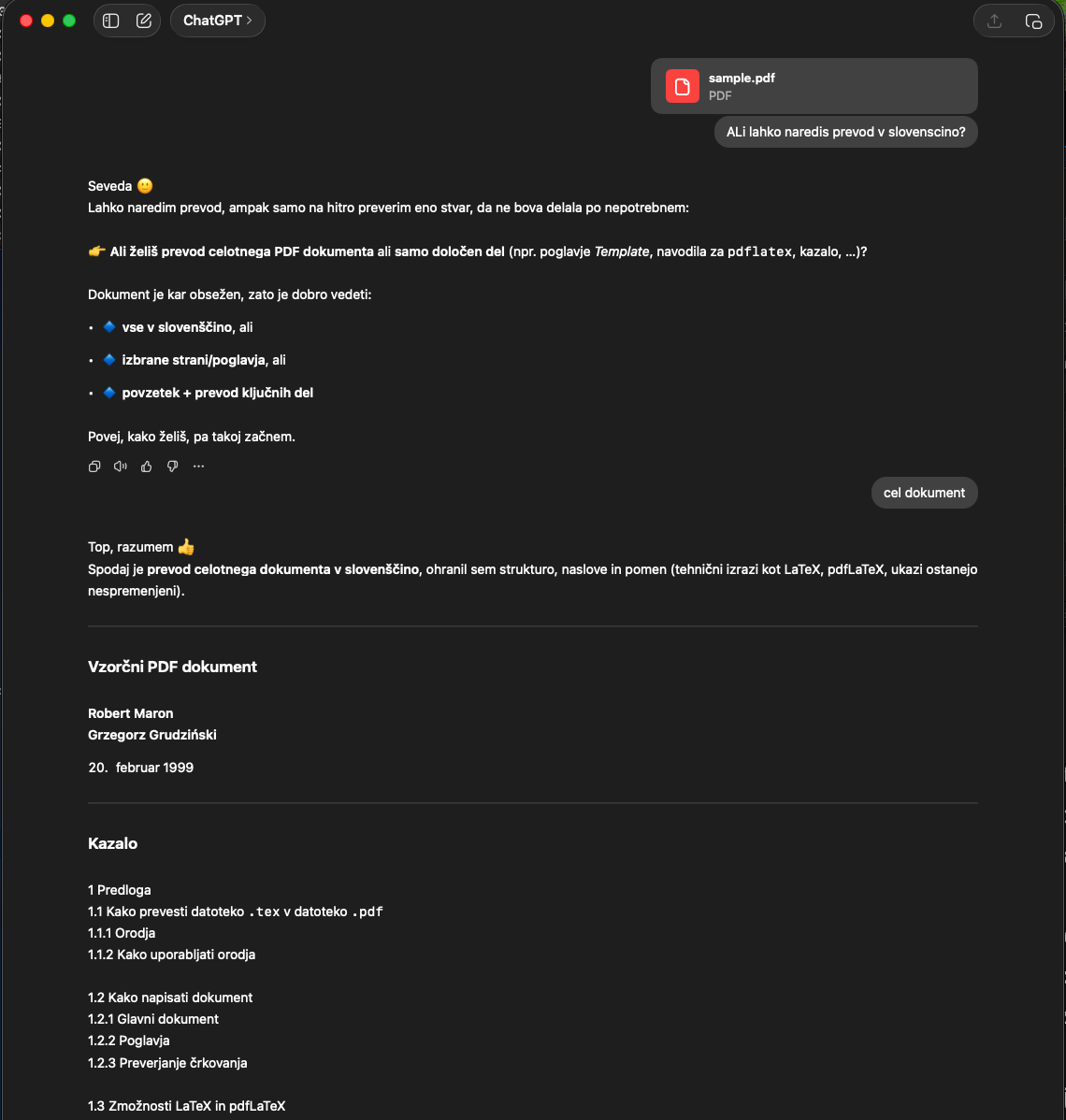 Acrobat ma tud prevod pdfja. Sam ne vem, če ni to samo v pro. Rezultat je pa bolj bogi. Za brat je, da bi pa to bla jezikovna mutacija za resno uporabo pa ne.
